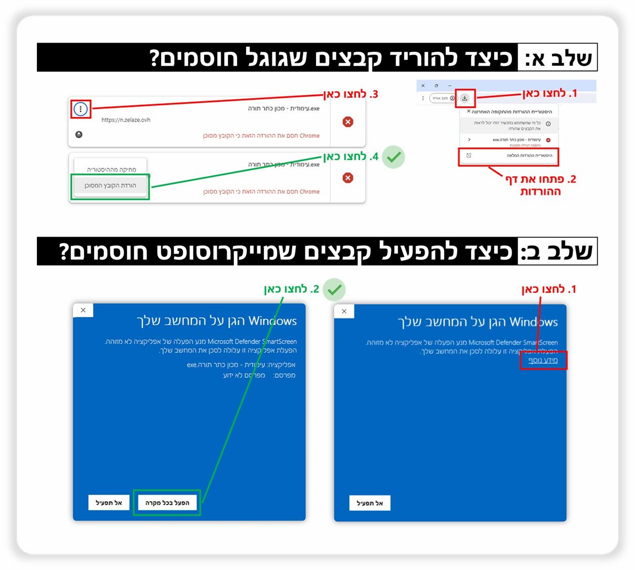 אם הדפדפן (כמו Google Chrome או Edge) חוסם את ההורדה – יש לאשר אותה ידנית מתוך דף ההורדות.